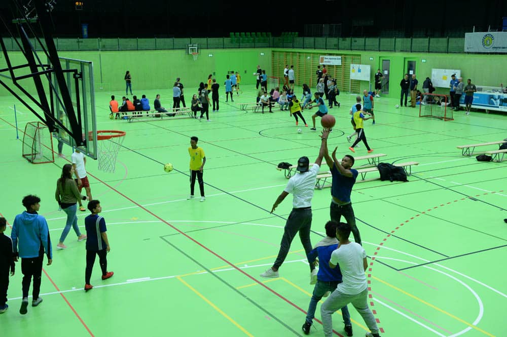 In verschiedenen Quartieren der Stadt Zürich öffnen wir an Samstagabenden Turnhallen für Jugendliche zwischen 12 und 20 Jahren. Die Veranstaltungen finden je nach Standort zu unterschiedlichen Zeiten zwischen 19 und 24 Uhr statt. Die Terminübersicht für die Saison 2025/2026 findet sich hier.