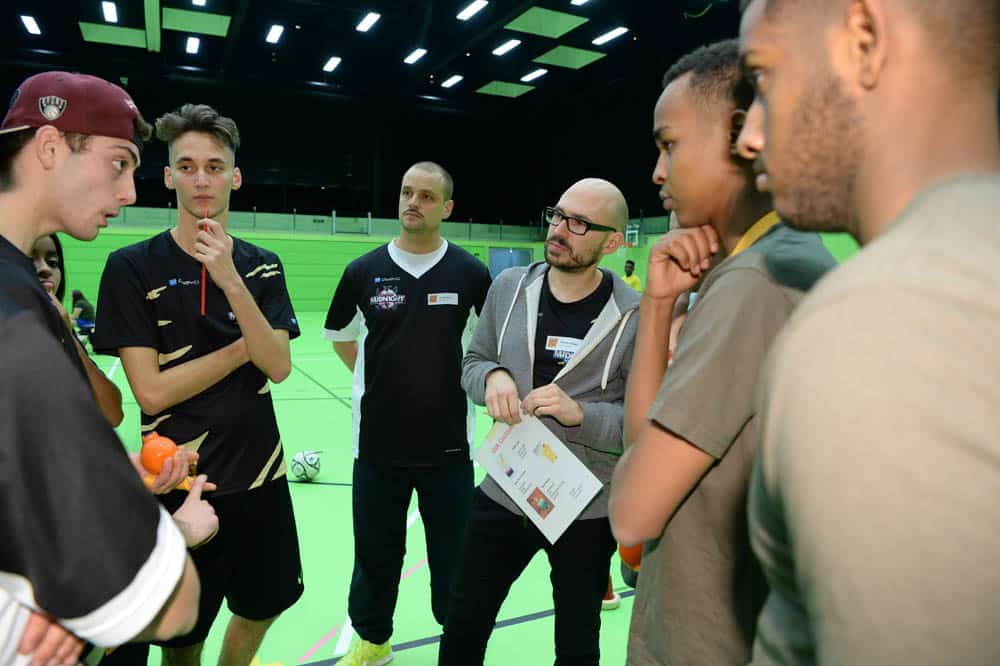 Die Organisation des Spielbetriebs übernehmen Coaches. Diese werden aus dem Kreis engagierter Teilnehmer*innen rekrutiert. Jugendliche erhalten so die Möglichkeit, zunächst als Hilfscoach und später als Coach Verantwortung im Midnight-Sports zu tragen.