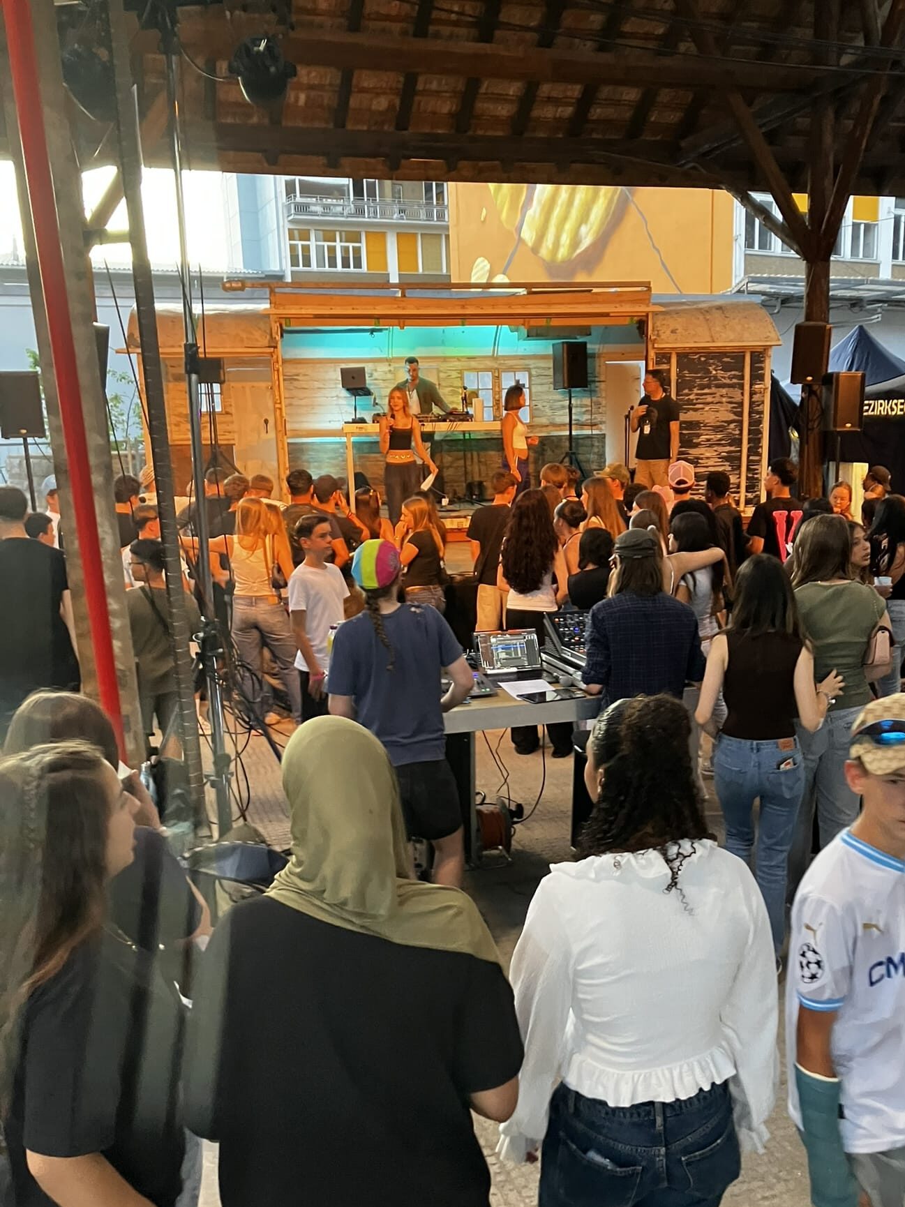 Bis anhin wurde das Jugendfestival in enger Zusammenarbeit mit den Gemeinschaftszentren in Altstetten im Einzugsgebiet des Team OJA West durchgeführt. Dieses Jahr wurde zusätzlich eine neue Kooperation möglich: Das Organisationskomitee «Chreis Nüün – Fäscht» und der Verein BEZIRKSECHO, dessen Ursprung in der Cevi Altstetten und Albisrieden liegt, fragten die OJA für eine Mitwirkung beim Quartierfest an. Nicht nur die Infrastruktur wurde für das «Züri K9 Festival» zur Verfügung gestellt, auch an der finanziellen Unterstützung durch Sponsoren wie der Sika AG und Kebab+ durfte die OJA dank den Initiant*innen des Quartierfestes teilhaben. Auf dieser Grundlage konnte eine der zwei Bühnen am Freitagabend, 27. Juni, ganz auf die Bedürfnisse von Jugendlichen und jungen Erwachsenen ausgerichtet werden. Jugendliche des Quartiers beteiligten sich an der Planung und stellten mit Mitarbeitenden des Team OJA West ein Abendprogramm auf die Beine.